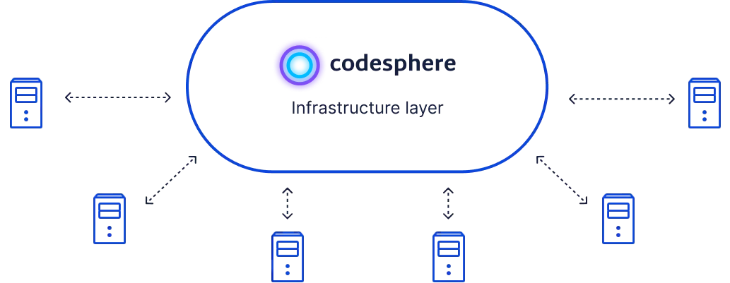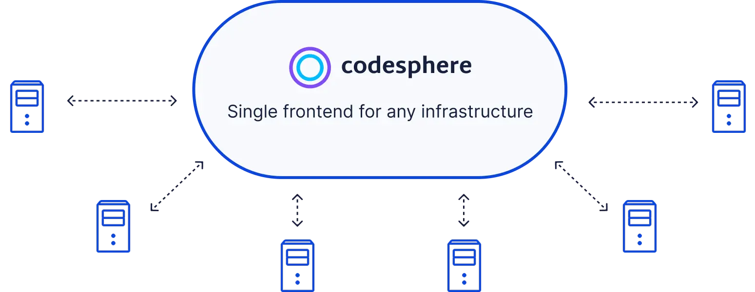 You can also use Codesphere to connect multiple datacenter on different clouds & infrastructure to a unified frontend. This is great for companies that run in scenarios where multiple locations need to be serviced by centralized development teams.