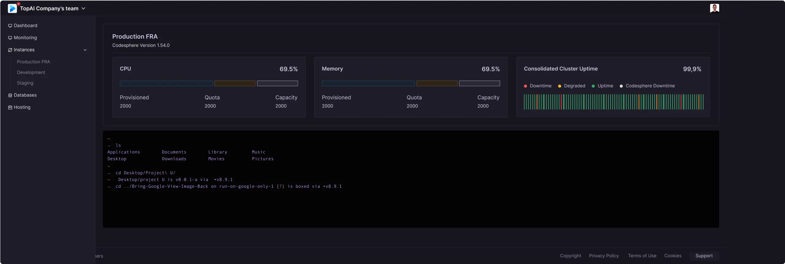Since Codesphere relies only on base components available in all major cloud environments and can even be installed on bare metal DCs, it is easy to pack up in one place and move to another infrastructure provider. This abstraction makes multi-cloud strategy a no brainer.